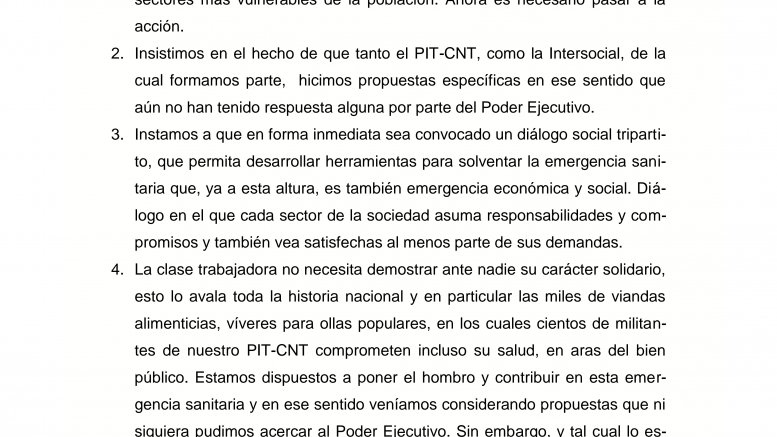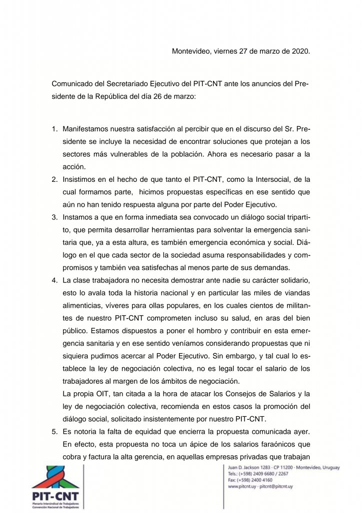 DECLARACION DEL SECRETARIADO EJECUTIVO DEL PIT CNT