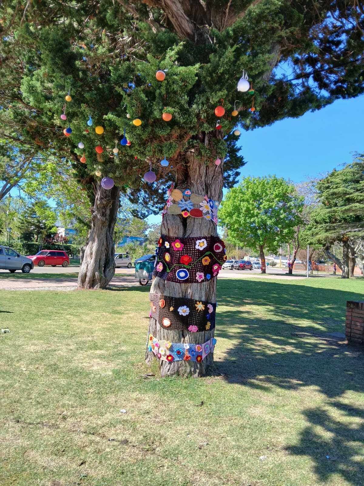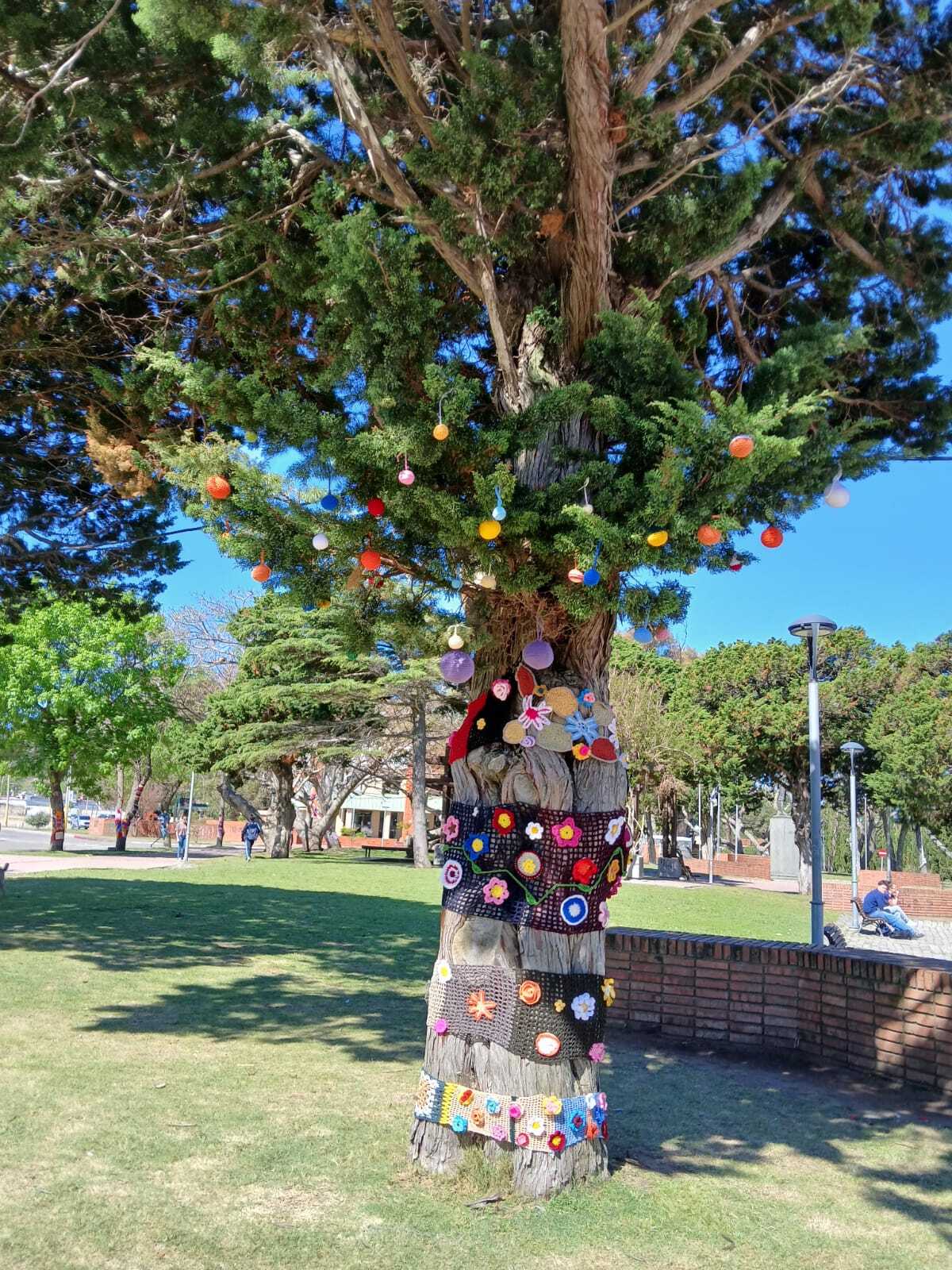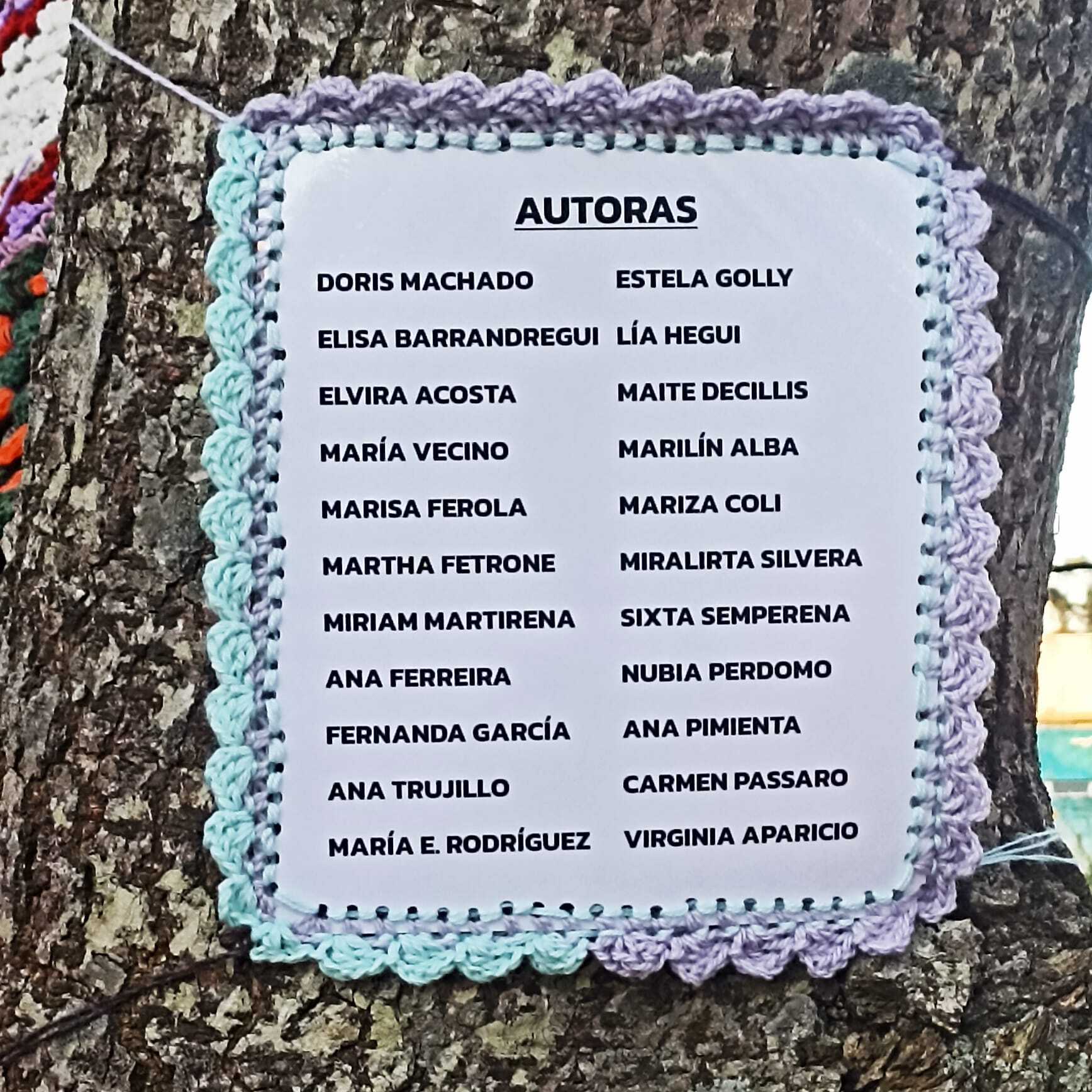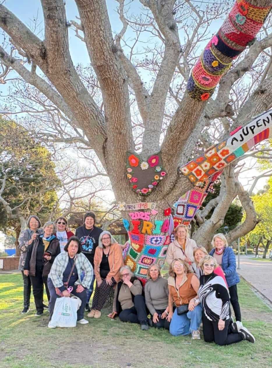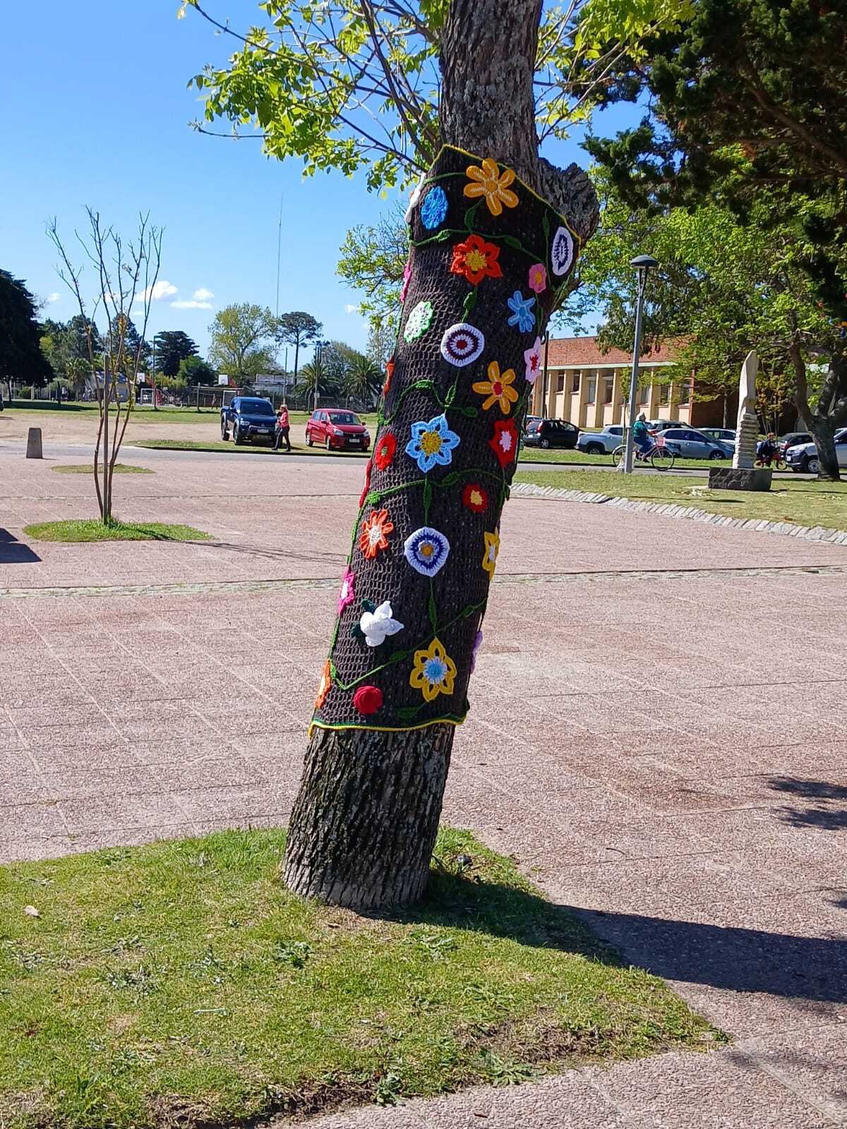 fotos de la Intervención urbana textil en Plaza Artigas que hizo nuestro grupo de tejedoras, 22 asociadas con su profesora Virginia Aparicio.